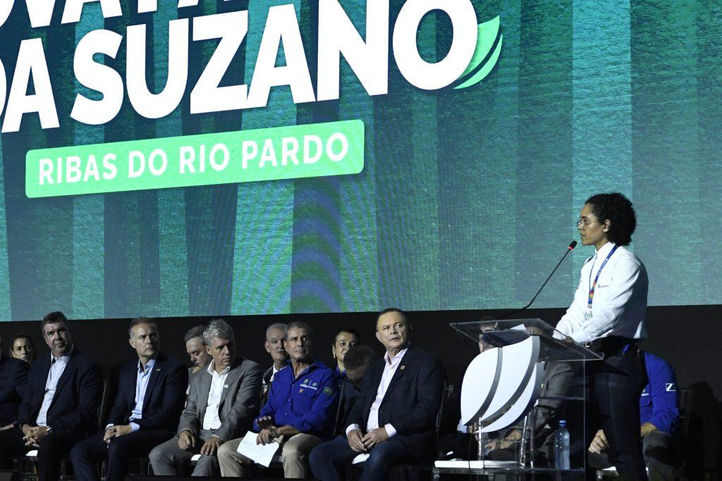 Paloma Vigiane durante inauguração da fábrica da Suzano